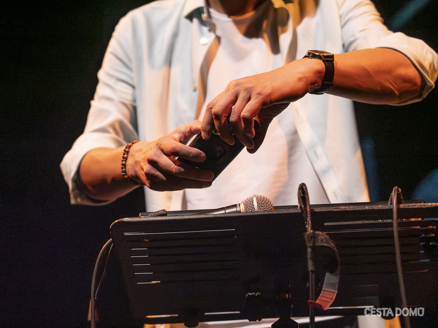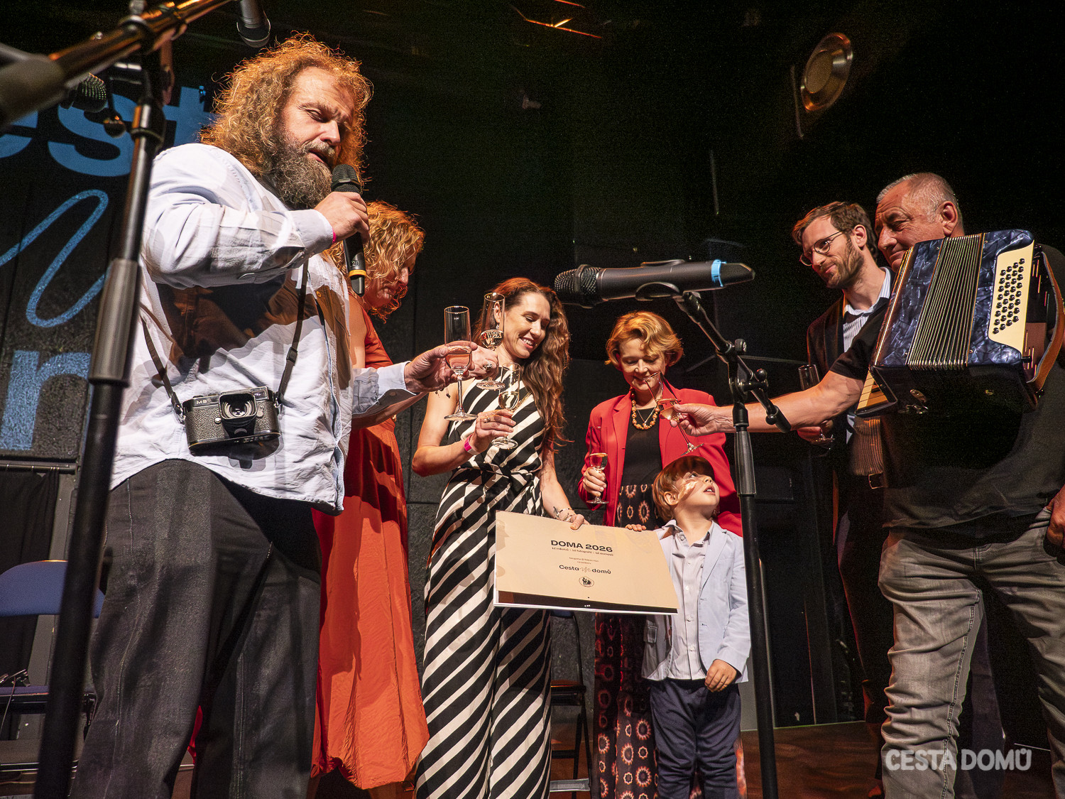 Na samý úvod večera přivítal návštěvníky ředitel Cesty domů David Kosák. Fotograf Štěpán Hon představil svůj kalendář DOMA na rok 2026, který byl na pódiu pokřtěn ve společnosti Lenky Machaloušové, ředitelky teplické neziskové organizace Arkadie, a několika osobností, které se nechaly zachytit ve svých domovech: šachistky Martiny Kořenové se synem, primabaleríny Nikoly Márové a hudebníka Václava Koubka, který křest doprovodil hudbou. Výtěžek z prodeje kalendáře poputuje tradičně na účet Cesty domů a Arkadie.